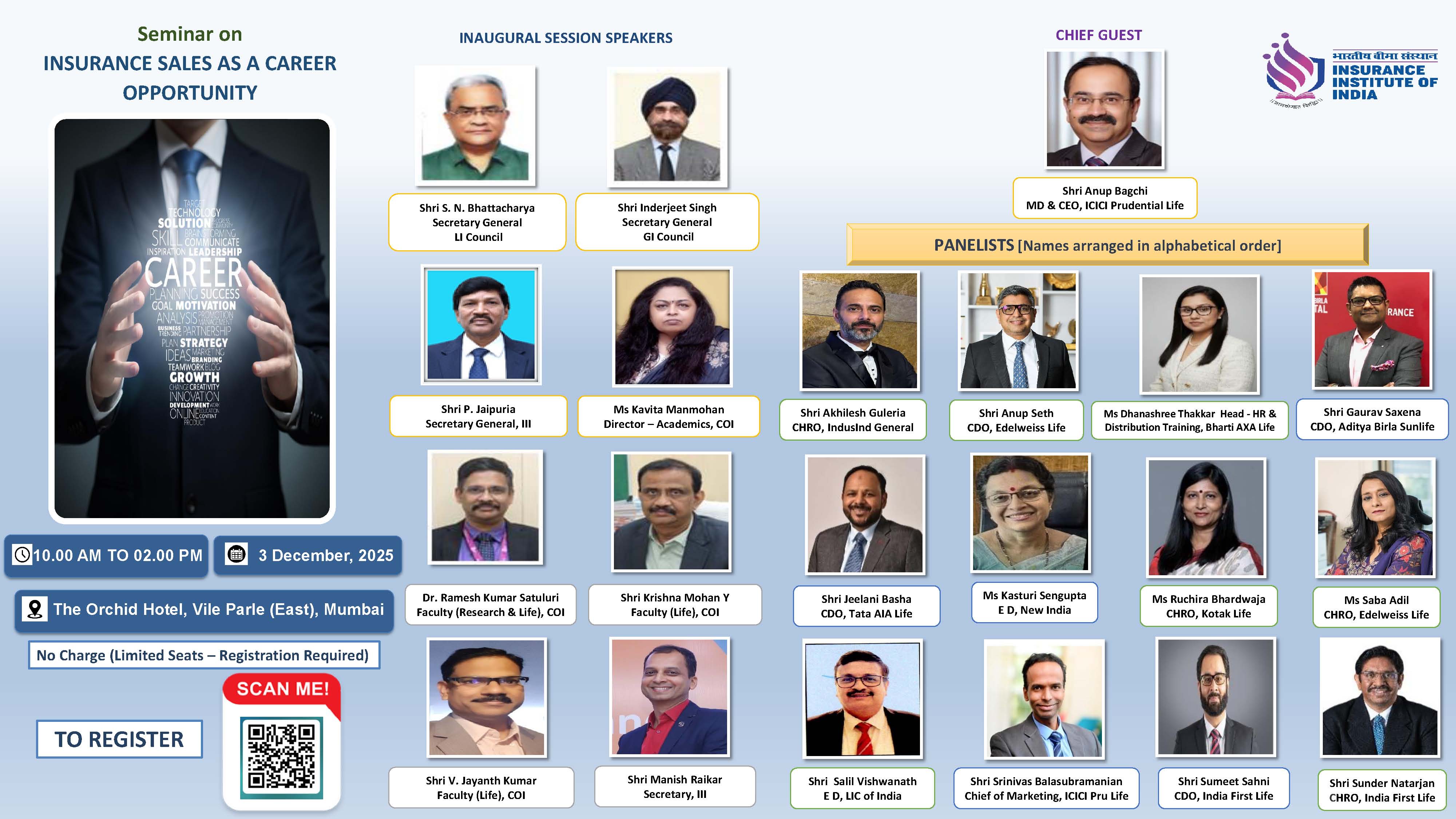 Seminar on "Insurance Sales as a Career Opportunity" on 3rd December 2025 at The Orchid Hotel, Vile Parle (East), Mumbai. - To register: